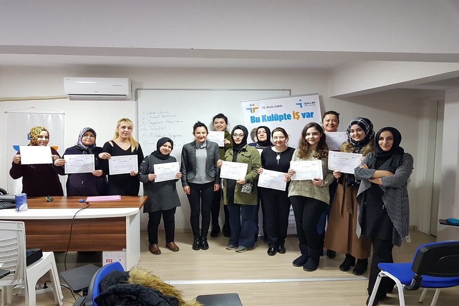 Manisa İş Kulübü Liderimiz Nilüfer Ateş, Yunus Emre Belediyesi Hanımlar Lokalinde kadınlardan oluşan 12 kişiye kendini tanıma, öz geçmiş hazırlama, beden dili ve mülakat teknikleri konularında eğitim verdi. Eğitim sonunda katılımcılarımıza sertifikaları, Danışmanlık ve İşe Yerleştirme Servisi Şube Müdürümüz Fatma Pınar Ertürk tarafından takdim edildi.